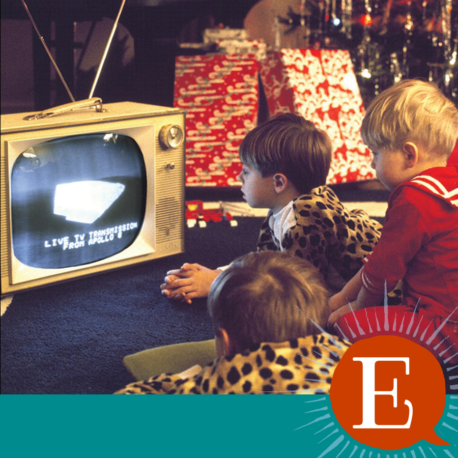 On Christmas Eve, there was a live broadcast from Apollo 8. Families all over the United States and across the world gathered around the 20-inch black-and-white TVs and eagerly awaited the broadcast from space.