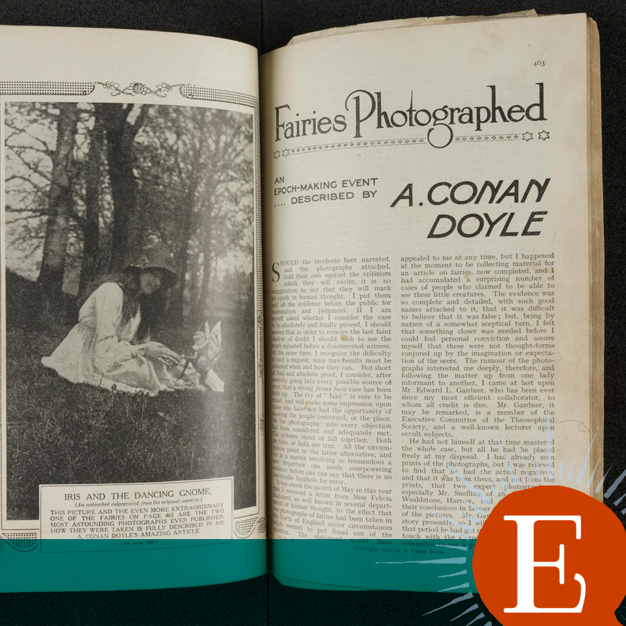 As the pictures enjoy a wider and wider circulation, they come to the attention of a very influential spiritualist of the day—Sir Arthur Conan Doyle. Doyle is well-known for his Sherlock Holmes stories and he’s well-respected, especially in the spiritualist community. And when Doyle sees the fairy pictures, he is transfixed.