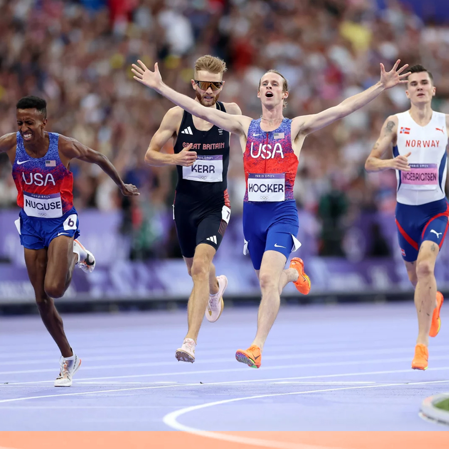 In the last three seconds of the race, it is Hocker, Kerr, and Nuguse who battle for the gold. In a stunning upset, Cole Hocker passes Kerr and sets a new Olympic record as he takes the gold. Kerr barely beats Nuguse across the finish line, leaving the previous Olympic champion, Jakob Ingebrigtsen, in fourth place.