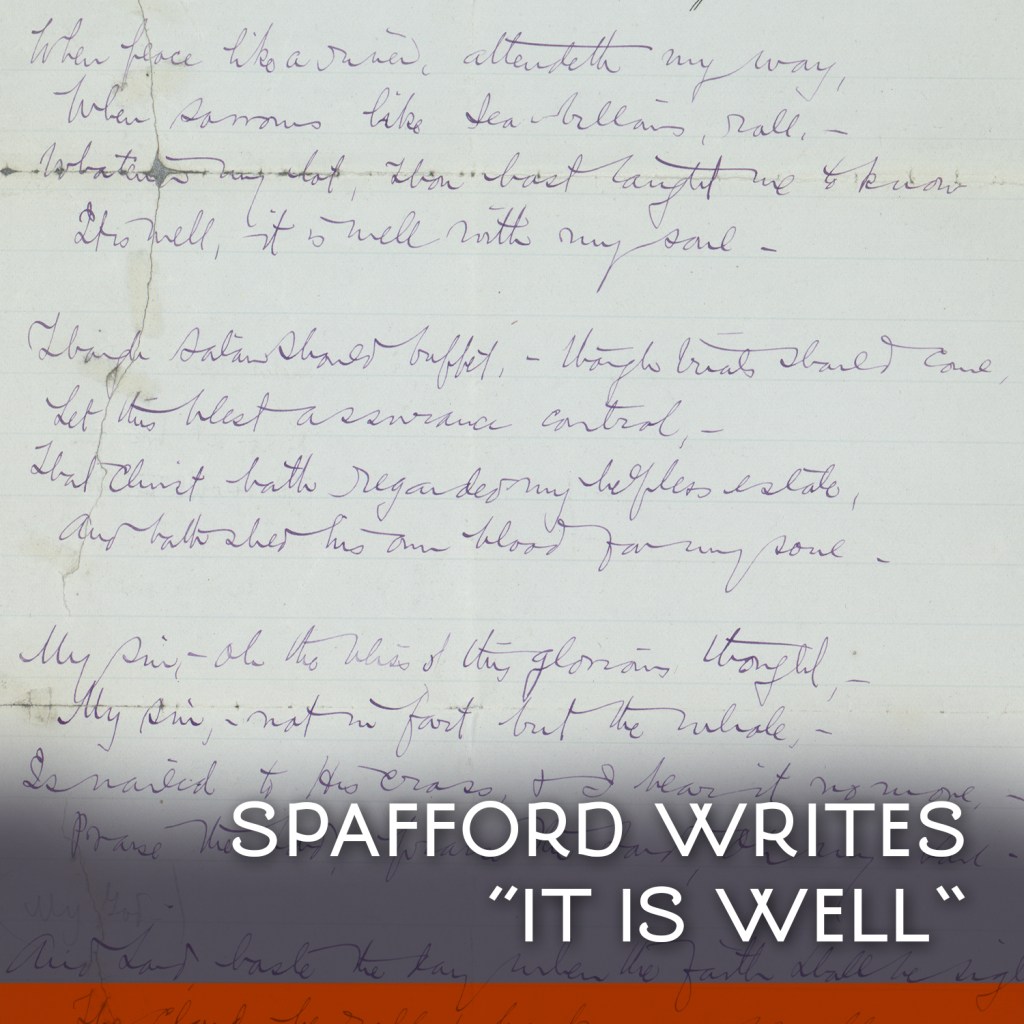 When he received the shocking news, Spafford was nearly paralyzed with grief. But despite sorrow being piled on loss, Spafford maintained his faith in God. As he crossed the Atlantic to join his wife, he penned the words to one of our most beloved hymns after crossing the spot where his daughters’ lives had been lost to the waves.